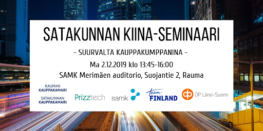 Tilaisuus toteutetaan yhteistyössä Rauman ja Satakunnan kauppakamarien, Satakunnan ammattikorkeakoulun, Prizztechin ja Satakunnan Team Finland- verkoston kesken.